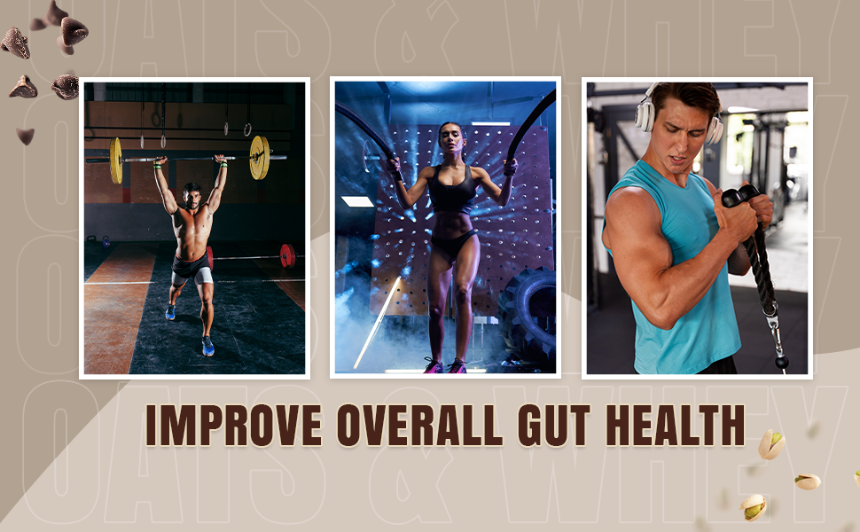 It contains Whey Protein, Rolled Oats, Fiber, and Essential Nutrients for muscle growth & digestion support.