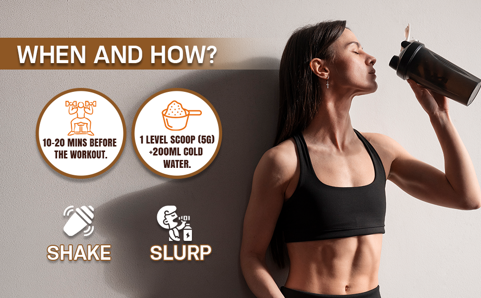 Mix one scoop of Instant Charge Pre-Workout with 200-250ml of water and drink it 20-30 minutes before your workout. This gives the ingredients enough time to kick in, so you’re ready to give your best performance! Adjust the dosage if you're a beginner or sensitive to caffeine.